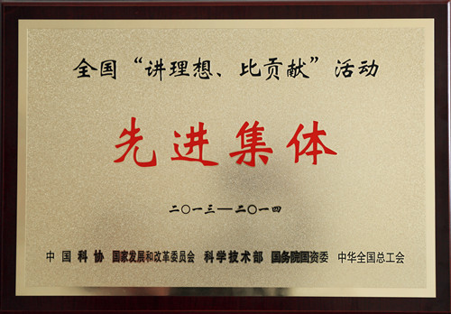 公司榮獲2013-2014年度全國“講理想、比貢獻”活動先進集體稱號